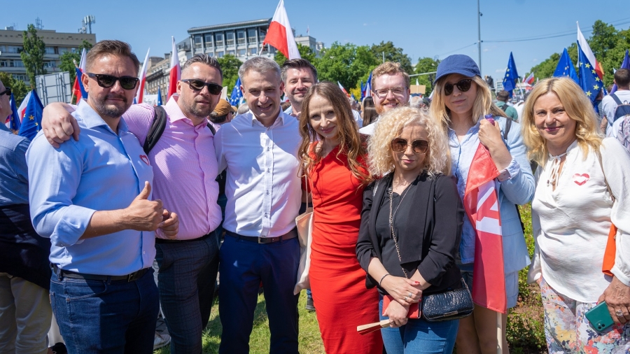 Szliśmy  razem  z  Donaldem Tuskiem, Lechem  Wałęsą, Rafałem Trzaskowskim, Włodzimierzem  Czarzastym, Robertem Biedroniem, przedstawicielami   partii  opozycyjnych, samorządowcami, związkami  zawodowymi.