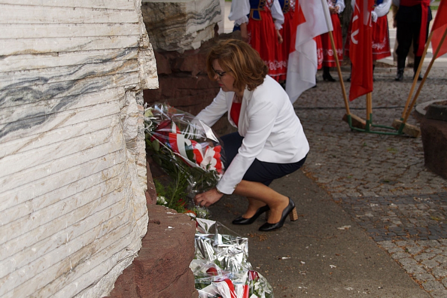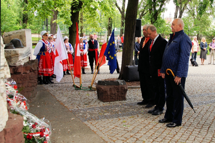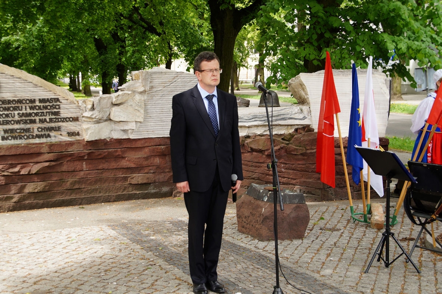 Obchody 1 Maja zorganizowane przez SLD w Inowrocławiu pod Pomnikiem Obrońców Inowrocławia. Fot. Mieczysław Kamiński